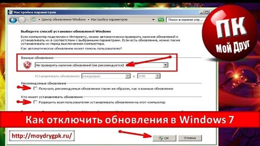 Как отключить обновления в Windows 7