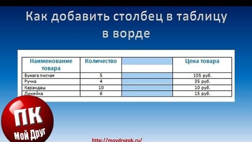 Как добавить столбец в таблицу ворда