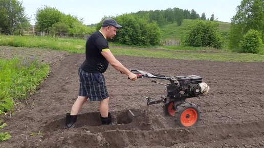 Посадка картошки с помощью мотоблока. Нарезание борозд.