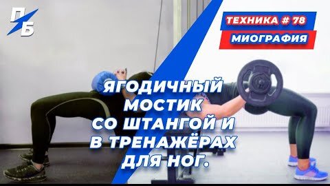 Ягодичный мостик со штангой и в тренажёрах для ног. Миография