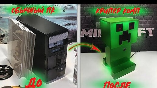 Minecraft - Компьютер в стиле Крипера! Корпус для ПК своими руками из оргстекла, полный кастом кейса для компа!!! Modding PC