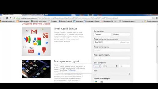 Как открыть свой аккаунт в Google здесь почта и сервис Youtube