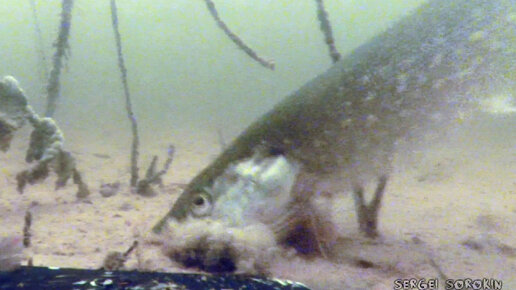 Щука пригвоздила карася и откусила леску! Подводная съемка