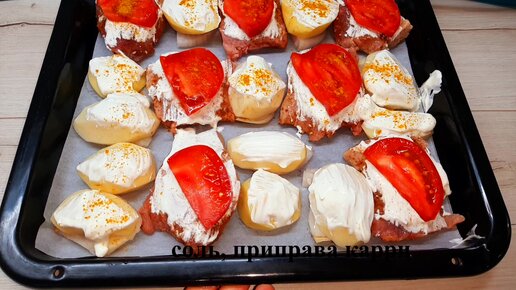 Очень вкусное мясо под шубой на луковой подушке. Теперь все мои подруги так готовят, делюсь этим рецептом