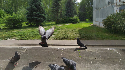 Косят траву во дворе. Вид из окна стал гораздо лучше! Кормлю голубей... Мой любимчик лавр!