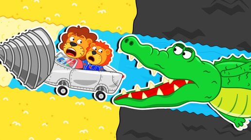 Lion Family 🧩 Journey to the Center of the Earth #25. Inflatable Trampoline | Cartoon for Kids