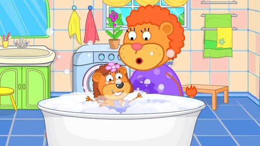 Lion Family - Mom Washes Baby in the Bathroom Cartoon for Kids