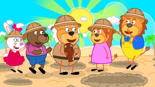 Lion Family Rest and Discovery in Egypt Cartoon for Kids