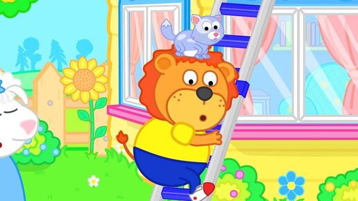 Lion Family 🦁 Сat on the roof 👪 Cartoon for Kids