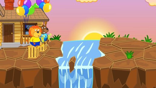 Lion Family Flying House at the Waterfall Cartoon for Kids