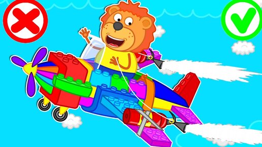 Lion Family 🛩️ Build Lego Airplane and Fly with Sister | Cartoon for Kids