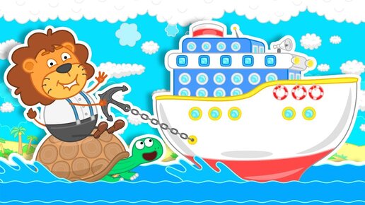 Lion Family Ride me a big Turtle Cartoon for Kids