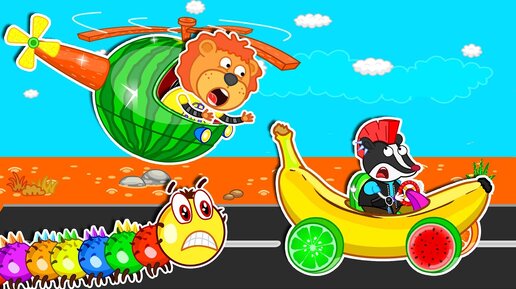 Lion Family 🍉 No No Don't Ride Fast. Race on banana #2 | Cartoon for Kids