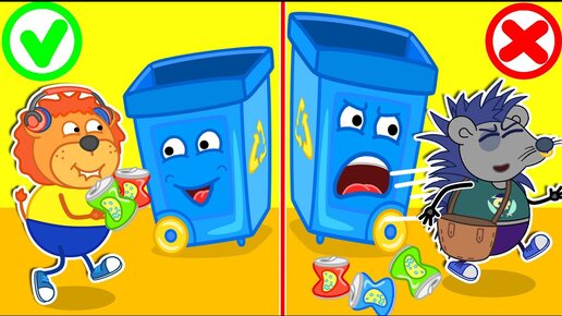 Lion Family | Talking Garbage Bin with Magic Garbage Detector | Cartoon for Kids