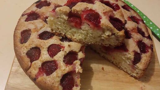 Простой и быстрый в приготовлении наливной пирог с клубникой