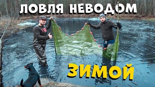 Ловля неводом зимой! Сергеем Трейсером. Жарим в казане карасей и щуку.
