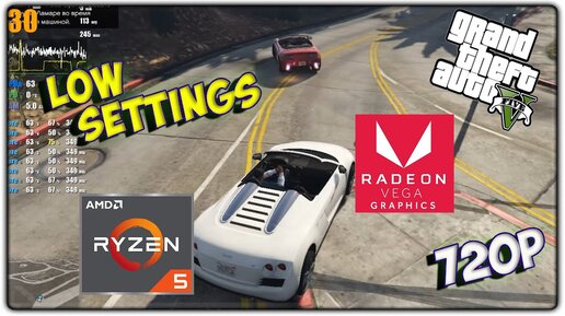 RYZEN 5 3500U + VEGA 8 + 8GB RAM | GTA V | low settings | 720p