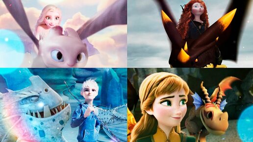 Драконы и Всадники Эльза, Рапунцель, Джек, Мерида, Моана, Ханс, Кристофф, Иккинг, Астрид (Crossover)