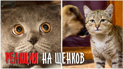Реакция котов на щенков в доме. Немного в шоке...