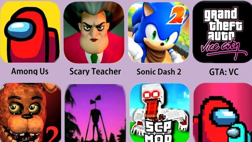 Among Us,Scary Teacher,SCP Minecraft,Siren Head,FNAF 2,Sonic Dash 2,GTA:VC