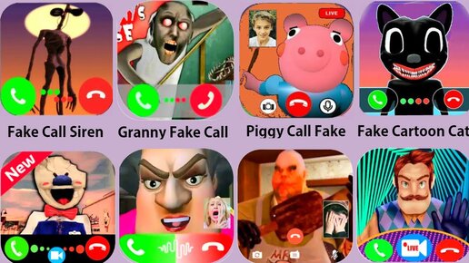 Siren Head Call,Granny Fake Call,Ice Scream Call,Hello Neighbor Video,Cartoon Cat Call,Piggy Call