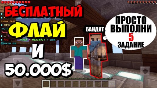 КАК Бесплатно Получить Флай и 50.000$ НА Топовом Сервере Для MInecraft Pe 1.0.5-1.0.9