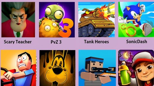 Scary Teacher,PvZ 3,Tank Heroes,SonicDash,Block Strike,Boris,Subway Surfers