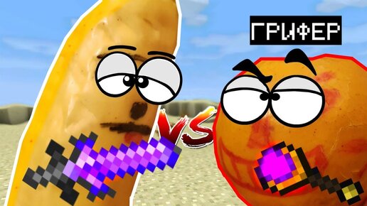 Грифер Яблока Угрожает Банану в Майнкрафт НА Крутом Сервере Для Minecraft Pe 1.0.5-1.0.9