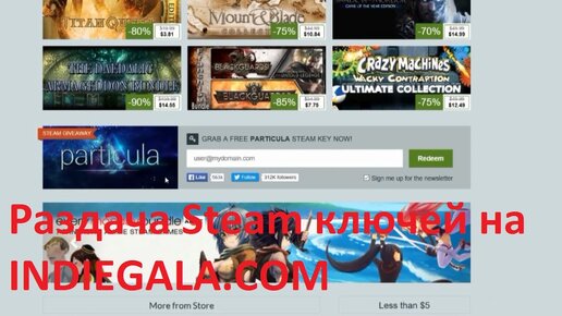 Раздача халявных ключей игр Steam на сайте IndieGala
