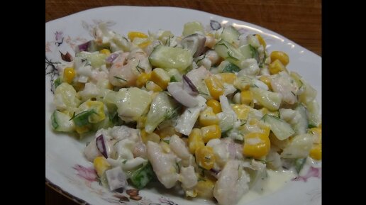 Новогодний салат с креветок, яиц,свежих огурцов и зелени