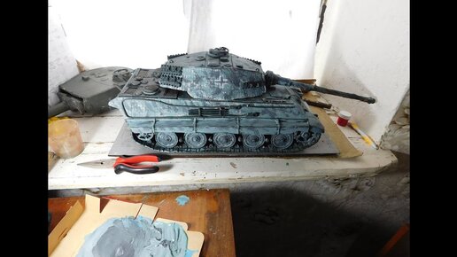 Panzerkampfwagen Vi «Tiger Ii из пластилина наносим циммерит и полная покраска