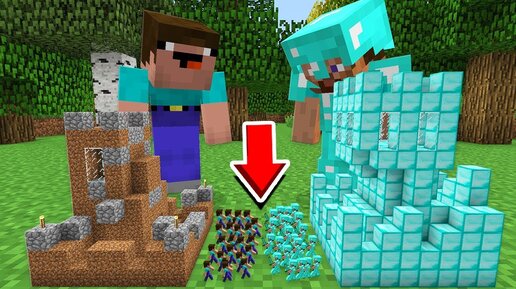 МАЙНКРАФТ, НО АРМИЯ МАЛЕНЬКИХ НУБОВ 1000 ПРОТИВ 1000 ПРО И МАЛЕНЬКИЙ ДОМ! ЗАЩИТА ДЕРЕВНИ МАЙНКРАФТ