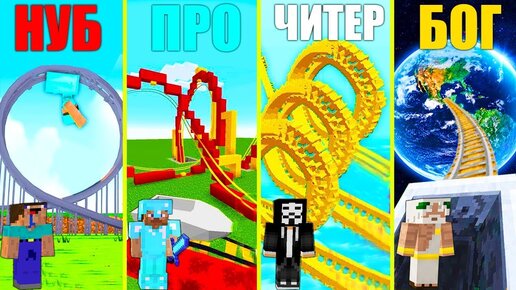 МАЙНКРАФТ БАТЛ: НУБ против ПРО против ЧИТЕР против БОГ: ЭКСТРЕМАЛЬНЫЕ ГОРКИ АТТРАКЦИОНОВ В MINECRAFT