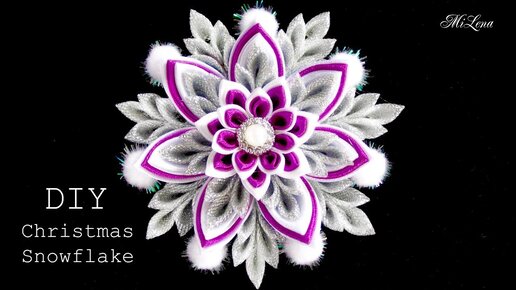 Новогодняя Снежинка Канзаши, МК / Diy Kanzashi Christmas Snowflake