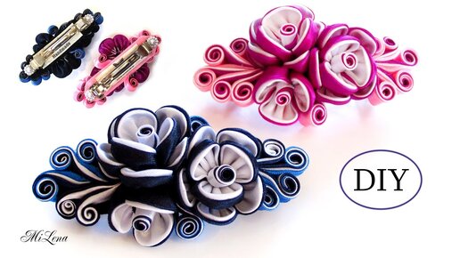 Заколка-автомат Канзаши, МК / DIYKanzashi Flower Hairclip / Kanzashi Tutorial