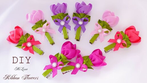 Мини-зажимы с Цветами, МК / Diy Ribbon Flowers Hairclips