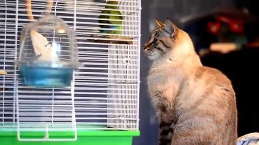 Мой котик Марик с интересом наблюдает за неразлучниками. Милашество! ㋛