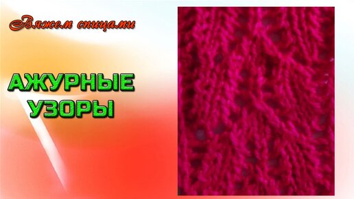 Вязание спицами ажурного узора Ветка с листьями (схема)