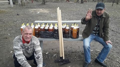 На что готов мужик ради 50 литров пива / Уборка детской площадки 18+