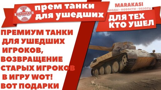 Премиум Танки Для Ушедших Игроков, Возвращение Старых Игроков в Игру Wot! ВОТ Подарки World of Tanks