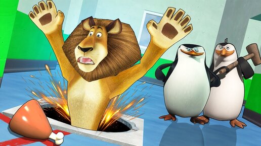 Пингвины Мадагаскар Vs Лев Алекс в Зоопарке Нью Йорка! Маньяк Ксго