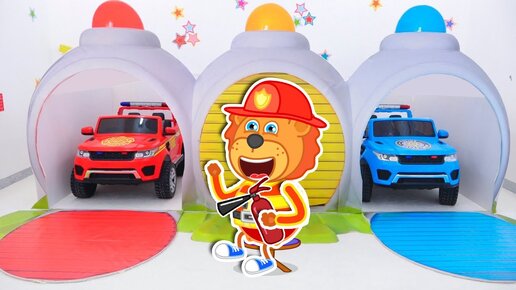 Lion becomes a City Hero and save the day. kids stories with toy cars 🍒 Lion Family