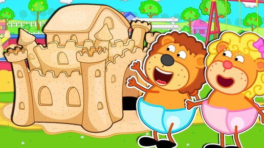 Lion Family 🍒 Build Sand Playhouse | Cartoon for Kids