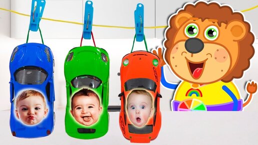 Lion Family 🍒 paint Toy Cars and have fun in the Car museum | Cartoon for Kids