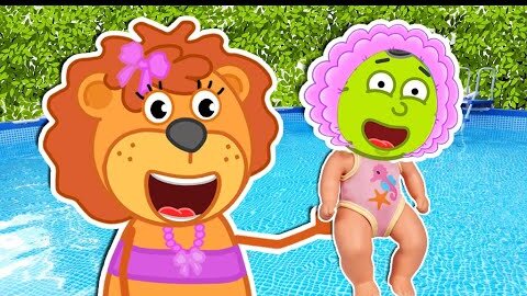 Lion Family found a boy doll and pretends to be a parent 🍒 Cartoon for Kids