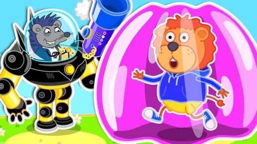 Lion Family 🍒 Iron Robot 7. Inflatable Playhouse | Cartoon for Kids