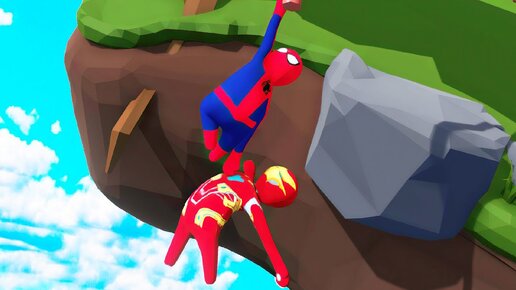 СХВАТИЛ МЕНЯ НА КАНАТЕ HUMAN FALL FLAT | пластилиновые герои Володя Человек Паук и Железный Человек