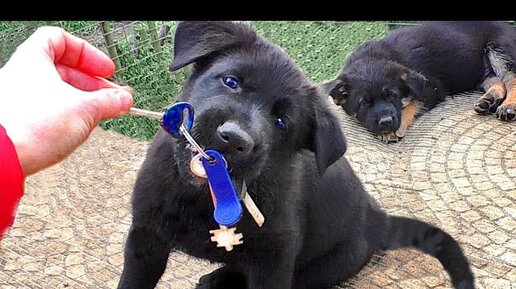 Тест с Ключами. Щенки Немецкой Овчарки от Айзы и Ареса. German Shepherd puppies 1.5 months.