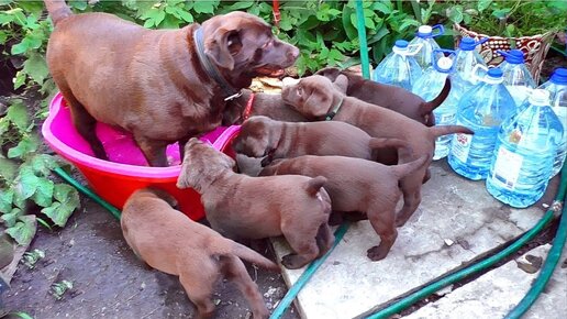 Весёлая Шоколадная Банда. Щенки Лабрадора 1.5 мес Funny Chocolate Band. Labrador puppies 1.5 m