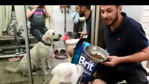 Лабрадор Марта любит корм Брит. Labrador Martha loves dog food Brit.